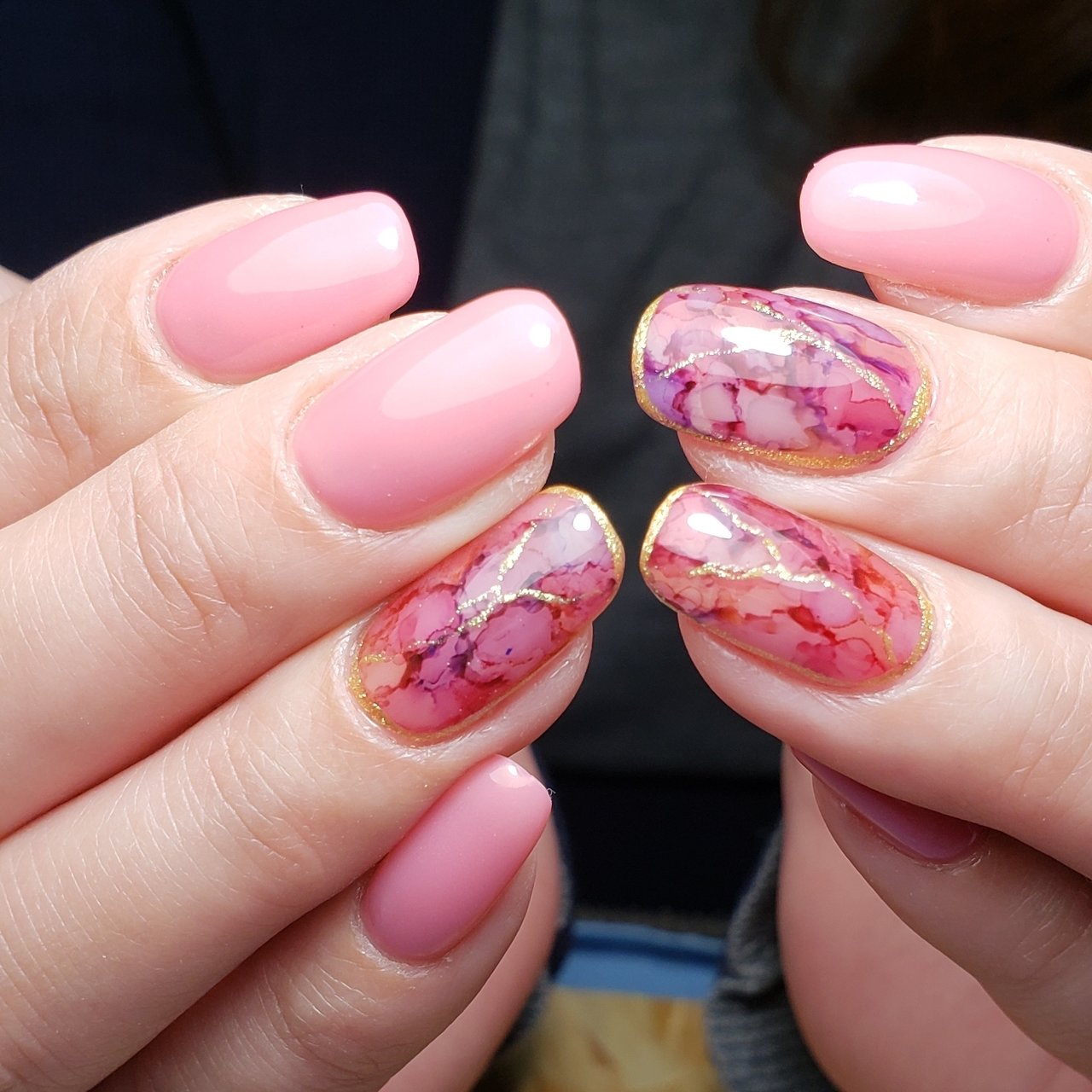 ピンク系のマーブルリキッドで大人ニュアンスネイルお呼ばれやブライダルや結婚式入学式卒業式にも使えるたらしこみネイルジェルネイルチップ 送料込み 送料無料
